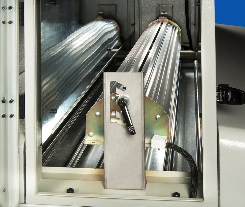 Estos hornos se suelen acoplar con recubridoras de rodillo y pulverizadores para un curado total de la superficie. La fase B en línea, o medio curado, se utiliza para recubrir encima de una superficie semicurada. Esto permite reducir al mínimo los requisitos de la máquina y el consumo de energía. Los hornos de curado RUV son fáciles de usar, eficientes y funcionan en frío.