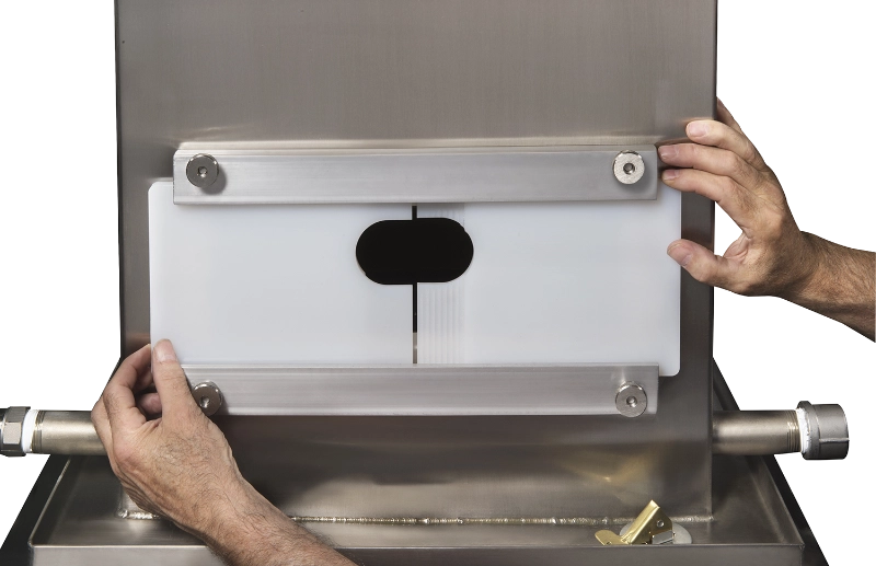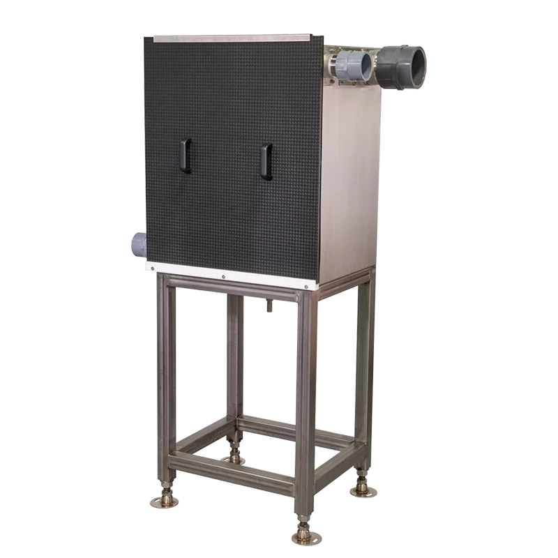 El sistema consta de una torre de separación, un productor de vacío, un panel de control y una cámara de aplicación única. Esta cámara de aplicación, que incorpora nuestra «Tecnología de flujo libre», mejora la consistencia del recubrimiento a presiones de vacío más bajas. Esto disminuye el consumo de energía, al tiempo que permite velocidades de alimentación más altas. La cámara también está diseñada para un cambio rápido y sin herramientas, lo que maximiza el tiempo de actividad de la producción. El sistema accionado por un controlador lógico programable (PLC) se interconecta con las máquinas en línea, permitiendo la integración del proceso.