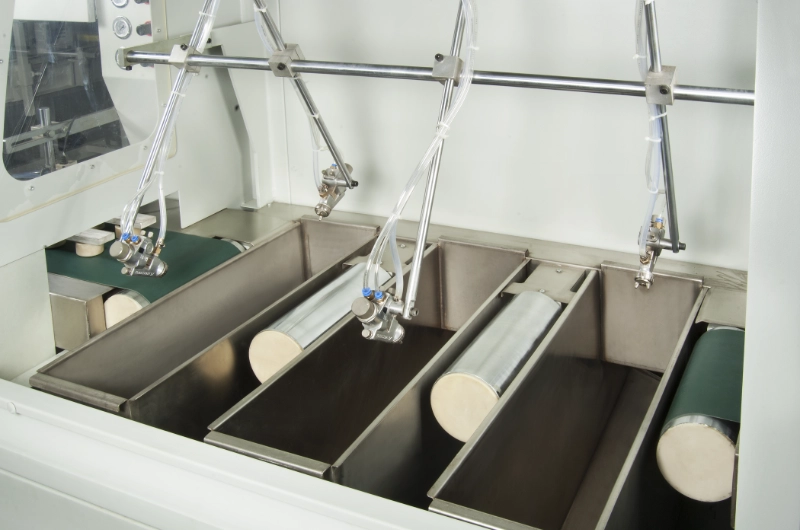 Las pulverizadoras Stanza STS Moulding son capaces de utilizar tanto revestimientos con base de agua como de disolvente, incluyendo tintes, pinturas, reactivos y lacas. Nuestras pulverizadoras vienen equipadas con boquillas de pulverización que se temporizan automáticamente para el inicio y la parada del ciclo de pulverización con el fin de garantizar la mejor eficacia de pulverización. El exceso de pulverización es capturado por 1-3 canales de pulverización y puede recuperarse, mientras que la pulverización atomizada es capturada por medios de fibra de vidrio y el aire limpio se expulsa por la cabina de pulverización.